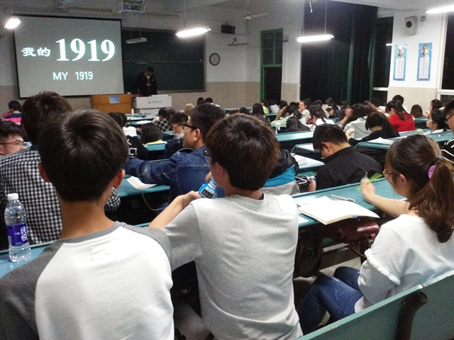 在15法学一班班委的主持下,此次爱国电影放映活动反映的是《我的1919》。电影讲述的是1919年初,第一次世界大战的战胜国在巴黎召开和平会议,中国政府提出废除帝国主义国家在中国的一切特权,取消‘二十一条’,收回日本在大战时夺去的德国在山东的特权,美英等国操纵会议,无理拒绝中国的正义要求。中国爆发五四运动,全国人民为拒签和约进行斗争,在巴黎的中国代表没有在和约让签字。电影《我的1919》通过中国外交使团在“巴黎和会”上,拒签“凡尔赛和约”的历史事件,生动展示出80年前中国外交风云,讴歌了中华民族威武不屈的民族精神和蓬勃高涨的爱国激情,同时也揭示了”弱国无外交”这样一条真理。影片着重表现和描写:顾维钧作为中国政府全权代表,在“巴黎和会”上维护国家尊严、保卫中华民族。