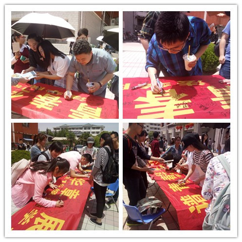 学习爱国主义精神,秉承“凝聚青年力量,共筑青春法苑”的活动主题,2016年5月4日15法学2班在一食堂门前举行了“谱青春华章,展师大风采”——"青春.印记"忆五四横幅签名活动,借此传承五四精神,展现法苑青春风采。本次活动由15法学2班团支部主办,有近百名员工参加了此次签名活动。
