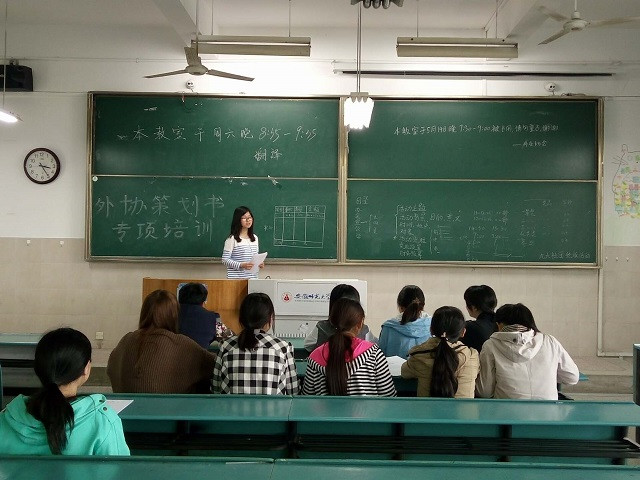 临近社团即将换届之时,为使社团优秀理事更加明晰社团活动流程,进一步加强社团优秀理事书面表达能力和提高撰写策划书的水平。外交协会于5月14日晚上7:30在行知楼2020303教室举行了社团期末策划书写作专项培训会。本次培训会由社团策划书顾问薛梅同学主讲,各部门优秀理事代表共计十余人加培训。