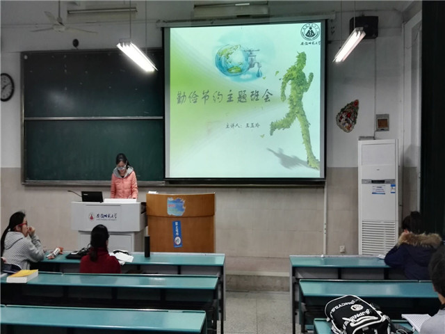 此次主题班会由三个方面构成“勤,俭,节约”,期间王玉玲同学精彩的表现也给整个法学专业的同学留下一个良好的印象。