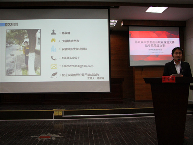 经过前期的层层选拔,共有13位同学进入决赛。决赛中,选手们职业目标定位明确,规划科学有序,借助制作精美的PPT,通过主题演讲、现场答辩分别从自我评估、环境分析、实施计划、反馈调整等方面向评委老师及同学们诠释了各具特点的职业规划。之后,评委们通过他们的职业规划书以及演讲内容针对性的进行提问,提问环节中,参赛选手们妙语连珠,赢得了在场同学们的阵阵掌声。