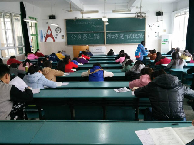 公务员之路初赛笔试于3月27日在行知楼举行。笔试分上午和下午两场。每场笔试开始前一个小时,全体工作人员在2020405教室集合,进行笔试工作相关任务分配。每场笔试工作人员都分为监考组、巡考组、阅卷组三组。在简短的会议后,各监考小组分别到达指定教室等待考生到场参加笔试。上午9:00,第一场笔试正式开始。开始考试后,考生严于律己,认真作答;负责监考的理事各司其职,保证了本次笔试的有序进行。11:00第一场笔试结束,阅卷组于2020405教室开始了第一轮阅卷。第二场笔试开始于14:30开始,16:30结束,阅卷组随即开始第二轮阅卷。