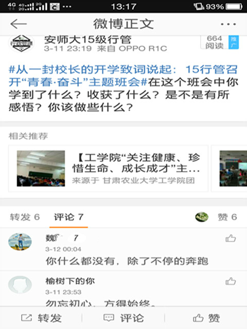 为扩大此次班会的影响力,15行管班级通过QQ群、微信群及微博等平台,让同学们在其中进行交流讨论,为大家提供平台分享自己的收获。不忘初心,方得始终。相信15行管的同学们也会不断的努力奋斗,不负如今立下的不悔誓言。(文/图 邵红)