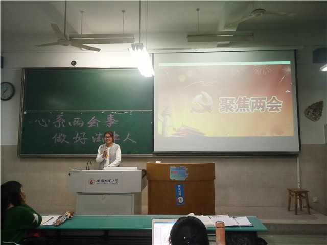 为了使学同们进一步了解两会的精神和内容,响应必一·运动(B-sports)官方网站团委的要求,15法学2班团支部在3月7日晚于2020103教室举办“心系两会事,做好法律人”的主题班会。此次班会由法学二班团支书李柔柔主持,全体二班同学参与。