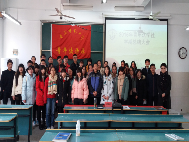 12月30日下午,青年法学社在2040403教室举行2015—2016年度第一学期期末总结大会。本次会议邀请了指导老师李路根现场指导,社团会长团、各部部长以及理事参加。