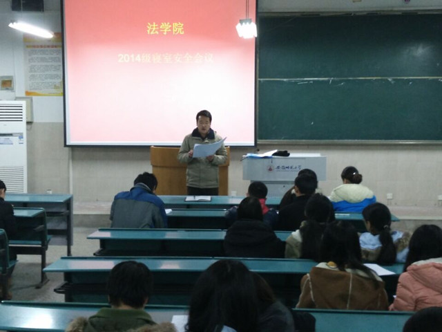 入冬以来,高校员工宿舍已发生多起火灾事故,严重影响员工生命和财产安全。为贯彻落实省委省政府以及全省教育系统有关安全工作的重要部署,为切实加强员工宿舍安全工作,保障广老员工人身财产安全,把员工宿舍安全工作做到实处,1月4日晚,2014级辅导员王琳在教学楼2020104教室召开14级法学员工宿舍安全工作会议,对员工宿舍安全工作进行强调、监督与指导。2014级法学专业全体寝室长参加会议,会议由王琳主持。