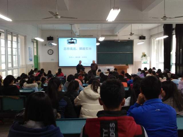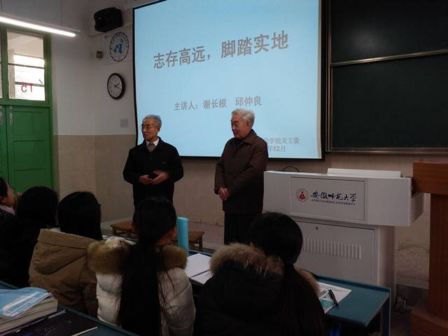 12月16日下午两点半2040103举办了一场特别的讲座。必一·运动(B-sports)官方网站的老教师,两位八旬长者,谢长根、邱仲良老师为15法学一班二班作“志存高远,脚踏实地”的专业指导讲座。