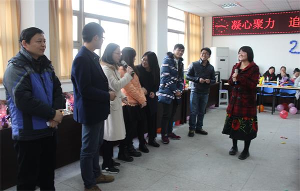 何源章老师对同学们寄予了新年期望,茶话会在何老师的寄语中拉开帷幕。檀丹丹同学首先清唱了一首《发现》带动了全场气氛,“你来比划我来猜”、“谁是卧底”、“天黑请闭眼”等游戏有序进行,同学和老师一起参与互动,现场气氛十分活跃。期间,王伟同学朗诵了一首《再别康桥》,让全场与会师生感受到了诗歌的美好,随后,刘建伟、王庆宇、姚远、陶云飞等各自用家乡的方言逐一朗诵,会场融满了家乡的气息。最后,汪梦龙给大家带来了歌曲《斑马、斑马》、《莫斯科郊外的晚上》,刘炎演唱了《痴心绝对》,现场气氛十分愉悦,大家在笑声中结束了此次茶话会。