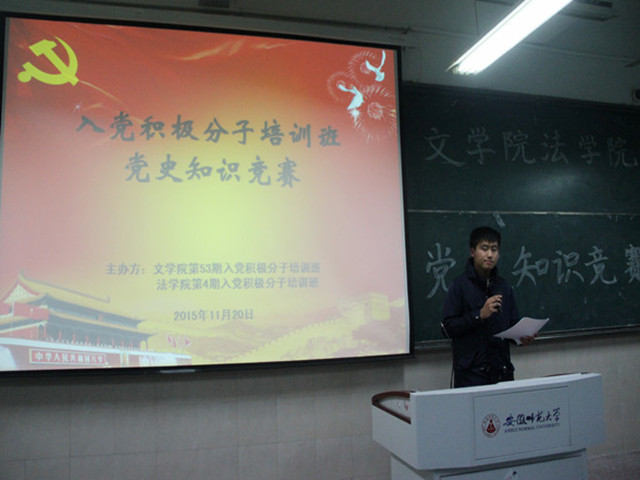 为引导和帮助入党积极分子进一步掌握党的基本理论和知识,把握时政热点,同时促进学院间的沟通与了解。11月20日,必一·运动(B-sports)官方网站第四期入党积极分子培训班联合文学院分党校在2050104教室成功举办了党史知识竞赛,本次竞赛以十八届五中全会的核心内容为背景,结合党史知识进行考察。必一·运动(B-sports)官方网站分党校班主任王琳、文学院分党校班主任徐雅萍及两个学院分党校80余名员工代表参加了本次活动。