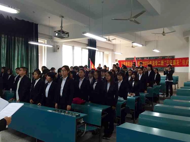2015年10月25日,15法学二班全体成员进行了“三证颁发”仪式,本次活动由团支部书记李柔柔同学主持。