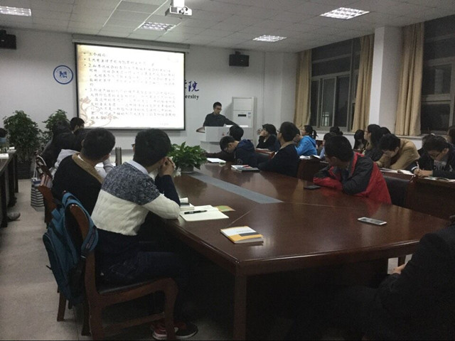 11月1日晚六点半,2014级卓越司法班在行政楼举办本学期第三次读书交流会。此次会议邀请了2010级法学潘雪松学长分享司法考试经验,14法学一班、二班的读书小组同学也参加进来,共同分享自己的读书心得与体会。王琳担任主持人。