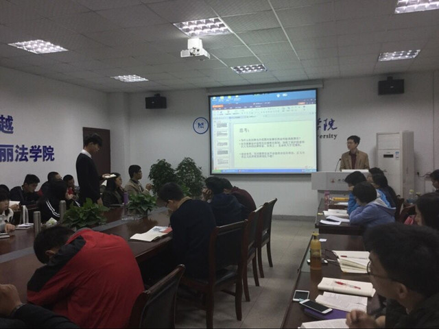 每组主讲人的出场顺序由抽签决定,首先是佘荣臻为大家讲解犯罪的分类,他总结:犯罪对社会的危害是衡量犯罪分类的标尺,并且对此发表了自己的观点;其次是宗硕分享了自己对民主的理解,比如什么是民主和混乱的民主是什么样的民主;第三个出场的是张继婷,她主讲了《论犯罪与刑罚》的第二十八章“侮辱”,她通过分析什么是耻辱刑和什么是名誉刑引出了网路名誉权的界定特征、构成要件、责任承担、保护现状和制度完善;刘学强阐述了中国的宪政的相关问题;最后是法学二班的万飞翔阐明了《论犯罪与刑罚》中战争产生的原因和刑罚的起源是什么,大家对其中不理解的段落作了深层次探讨。