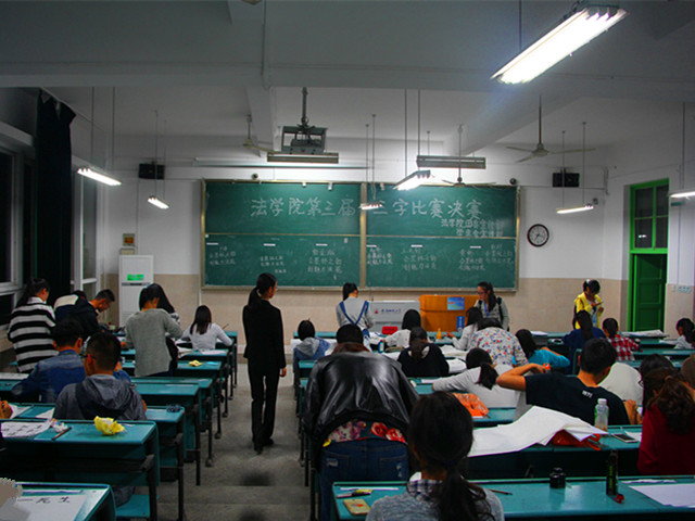 比赛分为三项:硬笔字比赛、粉笔字比赛以及毛笔字比赛。比赛开始,选手们笔走龙蛇、力透纸背,用认真的态度书写中华文化之精髓;粉末飞扬、字字有力,是黑板上展现的中华儿女之精神;龙飞凤舞、笔力遒劲,是宣纸上点染的中华民族之意蕴。不论是行书还是楷书,无一不体现出同学们深厚的文化功底。三项比赛依次进行,井井有条。无论是哪一项比赛,选手们都一笔一划、认真对待,只为在决赛中发挥出自己最好的水平。