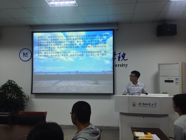 首先是“法哲学”小组的冯弋珩担任主讲人,他此次简明扼要的阐述了法律的美学,着重讲了法律与美学的关系以及作者对此建立的模型,让同学们了解更多法学与其它领域联系在一起的知识;第二组由陶思召主讲《犯罪与刑罚》中的量刑问题,她首先分析了作者思路,穿插讲解了必定性与严厉性的互补原则和及时性和必定性的好处,但着重讲的是量刑规范化的处理;第三组主讲人为朱庆阳,他不仅阐述了《政法笔记》上的内容,还对此做了延伸探究,查找大量资料,由褚时健等贪污、巨额财产来源不明案入题,较深层次的分析了什么是腐败、腐败为什么成风、当前我国对于腐败问题的治理情况,引起同学们积极而广泛的讨论,主持人王琳也发表了自己的感想,启示了在场的同学们;最后一组是黄雪芬主讲了法律的含混性以及法律与刑罚相适应的观点,同学们都踊跃发表了自己的观点。
