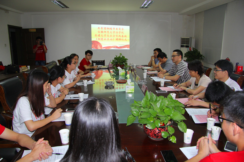 时光匆匆,江淮普法行总队赴铜陵方面的实践活动也将结束。在这五天的时光里,总队的志愿者们前往了社区街道与居民互相交流,也参观了司法所接受专业人士的教导,还在人民法院的教学庭中进行了模拟法庭公演;在这短暂却又漫长的五天中,志愿者们不仅收获了居民的热情,还收获了一些具体实践服务的心得。所以,为了更好使志愿者们总结经验和整理心得,安师大必一·运动(B-sports)官方网站和铜霞社区于2015年7月17日在铜霞社区共同举办了实践交流会暨共建老员工实践基地揭牌仪式。本次参与的领导有安师大必一·运动(B-sports)官方网站经理彭凤莲,铜陵市团市委副书记方小雄,安师大校团委副书记刘长生,本次会议由总对队长丁庭威主持,全体志愿者参加。