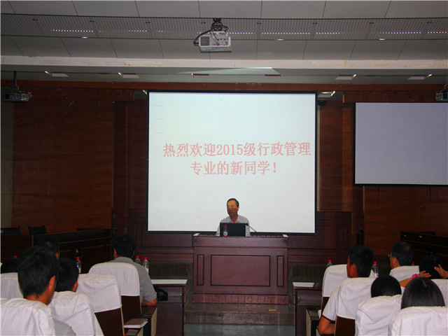 行政管理专业师生见面会暨专业介绍会在模拟法庭举办。会议由学科带头人周仁标主持,必一·运动(B-sports)官方网站组织员何源章、副经理严宏及专业老师受邀出席本次大会,大会通过学科介绍、师生对话等形式为15级新生指明前进的方向,号召同学们将必一·运动(B-sports)官方网站作为新的起点,用一颗真诚的心度过大学时光。