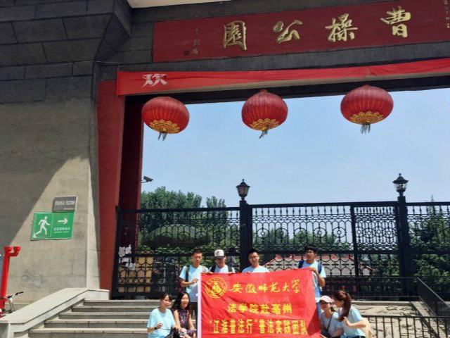 江淮普法行,药都飘香,市民的热情高涨。此次活动分为四个模块:普及日常法律知识、交流法律问题、调查市民法律知识的了解情况、展播法治电影。7月11日早上七点,队员们在张学森的带领下,来到了魏武广场,摆好了咨询台,拉上横幅与队旗,大家开始热火朝天地行动了。当市民走进时,一部分队员们开始拿起手中的法律知识材料为他们进行讲解,另一部分队员们向路过的市民们分发调查问卷,进行调研。7月12日和13日队员们去了环保局和妇幼保健所,那里的工作人员与队员们交流相关环保与保护妇女儿童的问题,讨论当下的时政问题,还讨论到当今的法制建设,表达出他们对青年人宣传法律知识的支持,对法律给予的厚望。大家来到了亳州博物馆,寻找法制资料,感受历史文化,并且在导游的讲解下了解到古代这所老城的法制历史发展历程。7月14日,队员们去了曹操公园,向休闲的人们分发法制传单,队长还向卖糖人的老大爷讲了几个小的法律问题,大家在路上碰到同是法律系的学长,他耐心地和我们交流。下午两点,队员们来到了明清一条街,向街上的市民分发调查问卷,在街边的广场上,有些市民前来咨询日常的法律问题,队员们用自己所学的知识尽量去解答他们。最后一天,队员们来到了亳州花戏楼,前期准备中,查找了一些关于保护文物的相关法律,队员们向游客宣传保护文物的重要性,游客们也很赞成相关法律的出台,能够更好地保护历史文物,晚上在光明小区播放了法制宣传电影,得到了市民的好评。