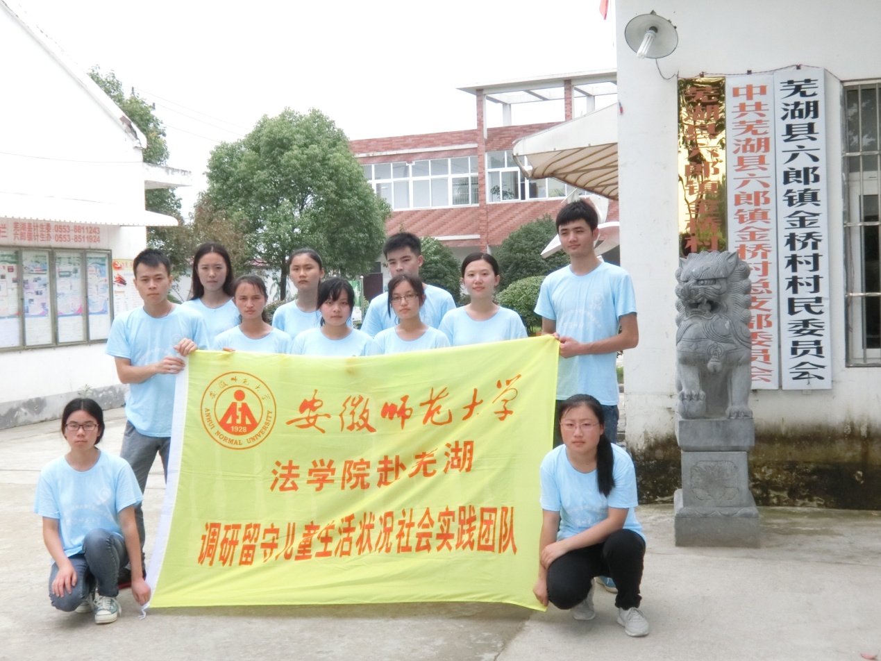 儿童是祖国的未来、民族的希望,同时,人的基本属性是社会性,人的性格的形成和培养离不开家庭的教育和父母的关爱,在父母之爱长期缺位的情况下,我们目睹了一个有一个悲剧的发生,例如近期的“毕节自杀四兄妹”和“可乐投毒案”。青少年儿童作为国家的希望应该受到重视,他们的身心健康是国家发展的重要保证,为更深入地了解留守儿童这一群体的现状,7月10号,安师大赴芜湖留守儿童调研团队13人来到了安徽省芜湖县六郎镇金桥村,通过与那里的留守儿童们进行交流与互动,并给其家人提问的方式,实现关爱留守儿童、了解留守儿童的实践目的。