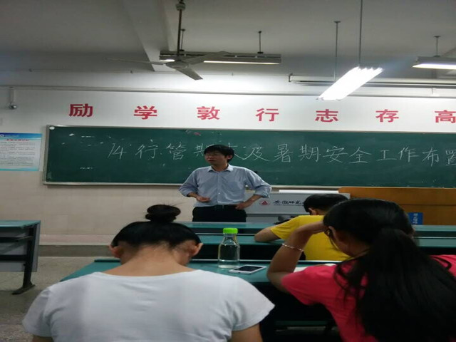 2015年6月27日晚上七点整,全体14级行政管理专业的员工在花津校区2020404教室展开了一次以“期末暨暑期安全布置”为主题的班会。