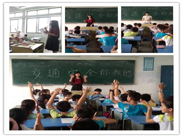 小学方面,小组成员以“交通安全你我他”为主题,陈玉杰先用三个小情景引入话题、吸引同学们的注意力。接着她讲述了三个发生在生活中的关于交通安全方面的例子,真实的情景描述使得全班同学聚精会神地听讲,事故的悲惨结局让大家更加深刻地体会到不遵守交通安全的危害。由讲故事的形式,将真实案例代入,更符合同学们的“胃口”。游戏环节,采用知识竞答的方法,以“击鼓传花”形式开展,邝玉哲和王园园同学合作搭配完成,同学们积极回答问题,把课堂氛围推到高潮。