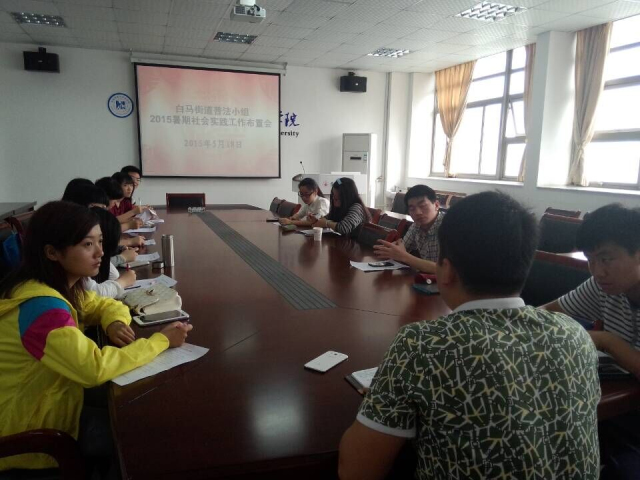 5月18日中午,在院行政楼四楼会议室,14级法学辅导员王琳主持召开白马街道普法小组暑期社会实践工作布置会,普法小组核心成员参与。此次会议目的旨在指导团队普法工作,并部署小组暑期社会实践工作课题。
