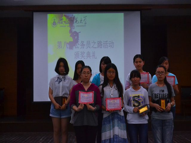 随着颁奖仪式的结束“公务员之路”系列活动也告一段落。公务员之路”系列活动从3月中下旬的前期宣传工作到4月28日的笔试再到5月10号的面试最后是5月24日的颁奖仪式。