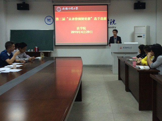 4月 29日晚7:00,公司于行政楼四楼会议室举行公开选拔面试,为选拔院第三届“未来律师”辩论赛代表团招募候选成员。副经理周俊强教授、党委副书记屈光峰、法学专业负责人汪维才教授、邓劲松老师、陈银珠老师及全体专职辅导组成评审团,对28名同学进行面试考核。