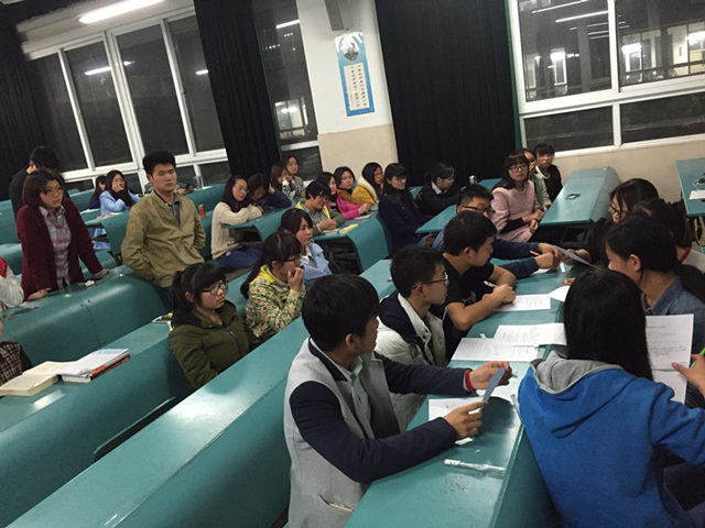 班会以“无领导小组”讨论的形式展开,共有3组同学共24人直接参与了讨论,讨论题目分别是:人生道路上,机遇更重要还是奋斗更重要;校园安全主要是靠学校管理还是员工自律;提高公民环保意识靠教育还是靠法律。每组讨论结束后,在场同学都会各抒已见发表自己的观点和看法,桂老师也为大家一一解释了讨论的具体细节,强调了在“无领导小组”讨论这种面试形式中应该注意的考点。此次班会,将学风建设、校园安全、环保三个问题融为一体,对同学们进行了积极正面的教育和引导。