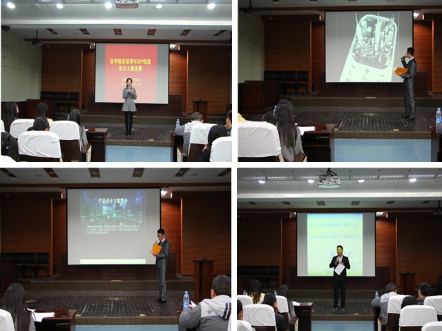 经过前期的层层选拔,共有11名同学进入决赛。本次决赛由APP创意书、PPT汇报与现场答辩三部分组成。选手们依次上台利用幻灯片展示自己的创意。整场比赛精彩纷呈,选手们不仅对自己的作品设计的创意来源、开发理念、实用价值和主要创新点进行了全面分析,更加清晰明确的介绍了产品的功能、适用对象、应用场景、应用现状和市场盈利前景。在现场答辩环节,选手们运用自己敏捷的逻辑思维能力和流畅的语言文字完美的解答了评委的问题。