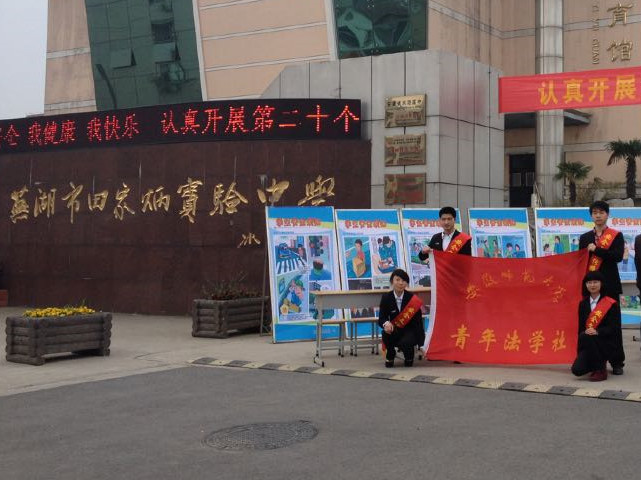 上午六点开始,志愿者们便开始积极准备此次活动的各项措施。首先,志愿者们赶赴田家炳实验中学,手拿安全教育知识宣传手册,热心且耐心的向过往员工发放宣传手册并细心讲解。期间,芜湖市电视台、安徽省电视台对我们的志愿者服务行为进行了跟踪拍摄。随后,青年法学社的志愿者们跟随领导前往芜湖市第二十九中学。在二十九中的活动仪式现场,相关领导发表了“我安全,我健康,我快乐”的安全口号,向各位员工讲解了安全教育的重要性,并且表达了对员工安全的关心。然后,各位领导询问校园安全状况。期间,志愿者们为中员工们分发安全知识宣传手册,并告知他们一些基本的安全事项,志愿服务得到了领导老师和同学们的一致好评。