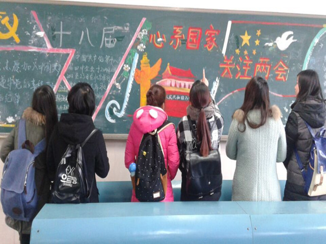 首先,团支书陈琪开展并主持“聚焦两会”主题班会,以PPT的形式分析了此次两会的十大焦点以及与我们法学专业息息相关的“反腐”“法制”“四个不全面”等问题,并积极倡导同学们关注两会、体会两会精神。在团支书的积极带领下,同学们就“立法权修改”、“反腐倡廉”、“改善民生”、“户籍改革”、“农业现代化和农村改革发展”等热点问题积极发表自己的意见和见解,并进行了激烈的讨论。同学们纷纷表示:作为当代老员工,我们会持续关注党和国家的最新动态,认识党和国家的发展要求,从而及时调整、准确修正自身工作方向。同时,为了让同学们方便、快捷地掌握两会信息,法学二班班委会也主办了以“走进两会”为主题的黑板报,更加深入、全面地反映两会热点信息,培养同学们关注时事、走入两会的兴趣,受到同学们的一致好评。