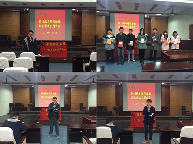 11月30晚7点,2013级卓越司法班在花津校区教学法庭召开期末考试主题班会。实验班全体员工到场,此次班会由辅导员陈银珠老师主持。