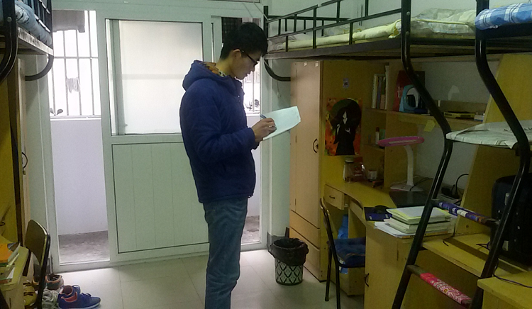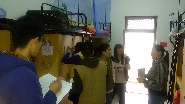 本次活动由院研会副主席张扬带领生活实践部等成员进行,主要针对宿舍用电安全、宿舍卫生及宿舍文化等方面进行检查。检查小组根据学校的《公寓安全卫生评分标准》,公平认真地对每个宿舍进行了评分,在检查过程中,同学们积极配合,物品摆放整齐有序,地面窗台干净整洁,部分宿舍还进行摆放鲜花、喷洒香水等特色布置。然而,个别宿舍还存在物品摆放杂乱、空气流通不好、乱用插排等问题,给同学们的健康安全带来隐患,检查小组均给予说明。