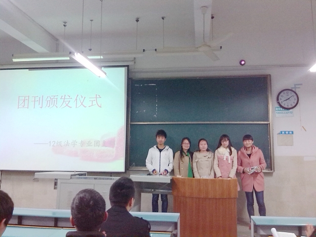 继团刊《青禾》前两期的顺利出版,第三期团刊的从征稿、遴选、设计到顺利出版可谓一气呵成。12级法学全体团员于11月12日晚八点在2010308教室举行团刊颁发仪式。本次由辅导员胡桂芳老师颁发团刊以及投稿奖励。