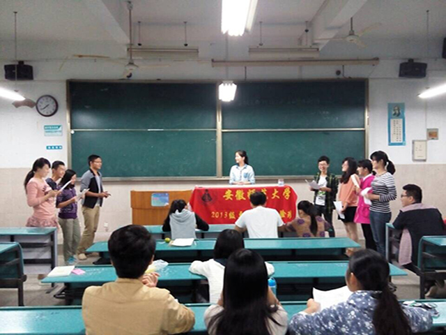 首先,宋婷婷简单地介绍了此次辩论赛将由开篇立论、驳辩、自由辩论、总结陈词四个环节组成。随后参加本次班级辩论赛的2支队伍,分别围绕“顺境逆境哪个更有利于个人发展”、“电视相亲的利与弊”展开激烈的辩论,双方辩手唇枪舌战,摆事实、讲道理,气势十足,现场高潮迭起,引发同学们阵阵叫好和鼓掌。最后,六位评委分别评分,选出了四位辩手参加院级辩论赛。
