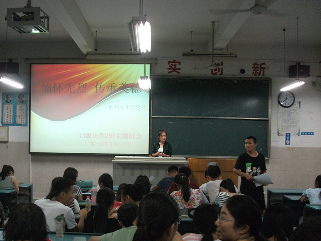 在首个烈士纪念日到来之际,9月27日晚七点半,2013法学2班在2020104教室进行纪念烈士主题团日观影活动。本次团日活动由我班团支部书记周师璇主持,全班同学到场参加。
