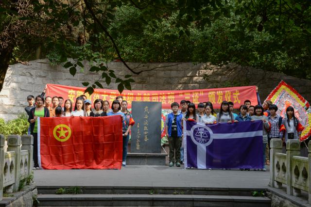 为缅怀革命先烈,弘扬民族精神,10月12日上午,14法学卓越班全体同学来到赭山公园举办戴安澜墓祭拜暨“三证颁发”仪式。