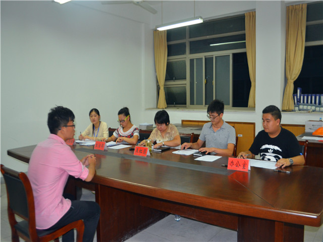 9月15日晚6点半,最后一轮面试在必一·运动(B-sports)官方网站行政楼多间办公室进行,必一·运动(B-sports)官方网站王焕炎老师、院团委书记王虹圆、必一·运动(B-sports)官方网站团委副书记陈兴宇、13级行政管理辅导员瞿津津、14级法学辅导员王琳以及员工会主席团成员、各部部长担任评委。面试分为自我介绍和面试官提问两个环节,通过前两轮笔试和面试的筛选,新生们表现从容,冷静对答,呈现出最佳的水平。