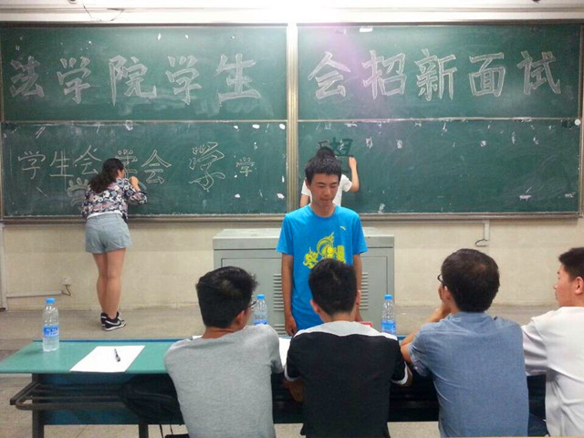 9月14日晚6点半,面试点迎来了第一批面试者。此次一轮面试继续在教学楼多间教室进行,由各部门部长、副部长组织,根据各自部门特色分别考察新生文字功底、语言表达、随机应变等多方面的综合素质。虽然刚刚军训完,但新生们却不见丝毫倦怠之态,大家都互相鼓励、互相探讨,激动之情无以言表。