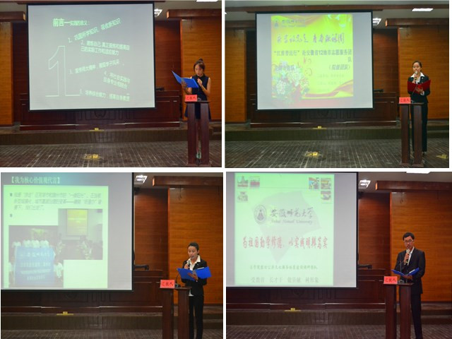 评比会中,各支团队以提高自身调查实践与综合创新能力为目的,通过5分钟限时阐述和PPT展示相结合的方式将此次暑期实践时开展的问卷调查,实地调研,普法宣讲等活动一一展现出来。各团队代表围绕自己开展实践活动的前期准备、活动组织和开展以及实践后的收获和感悟等方面展开了精彩汇报,每个团队汇报主题鲜明,内容丰富多彩,结合专业特点,下基层,赴山区,传播知识、增长才干,切实做到了江淮普法求真知、基层调研察真情、青春奉献践真行,真正把社会实践作为育人的大课堂、追求本真的实践境界,全面提升了实践育人的成效。