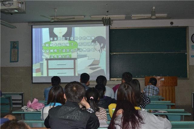 随后同学们观看了“贷款助学,信用助人”宣传片。宣传片通过形象有趣的动漫人物情景对话和访谈,向同学们介绍了国家助学贷款、征信和信用记录等概念和政策,使同学们对此有了更深入全面的了解。