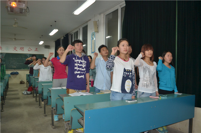 最后班级团支部书记李锦霞带领全班同学举起右臂郑重宣誓道:我要做诚信公民,以诚待人,以信立身,说诚信话、做诚信事、当诚信人;我将遵守国家的法律法规,恪守诚信的道德规范,以至诚之心,待人处世;以至诚之德,律言律行。立身先于立业,诚信伴随人生。同学们郑重启誓,决心在今后的学习、生活中践行誓言。