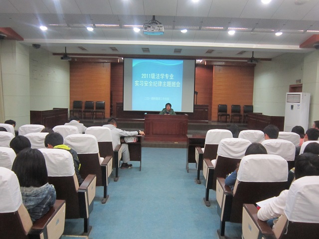 为做好11法学专业实习期间的安全工作,保障员工实习工作的顺利开展。必一·运动(B-sports)官方网站团委书记、11法学辅导员王虹圆,于4月26日晚七点在模拟法庭主持召开了“实习安全纪律主题班会”,11法学专业员工聆听了班会内容。