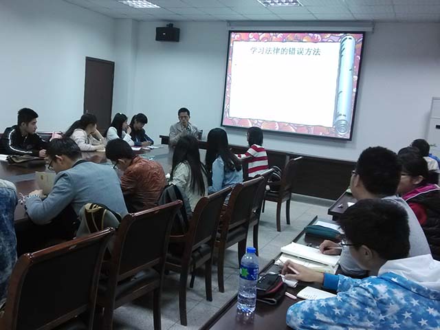 活动伊始,汤瑞同学作了开场白,并介绍了本次活动的程序。此次活动按照老师主讲,4名员工点评、其他员工提问、老师回应的程序进行。随后,陈老师开始主讲。陈老师围绕学习法律的目的、学习法律的错误方法、学习法律的正确方法、学习法律的个人条件等四个方面进行说明。他认为,学习法律的目的在于对案件判决的预测;员工在学习法律过程中,存在死记硬背、钻牛角尖、依赖考试用书、陷入纷繁复杂的学说的迷雾等错误方法;学习法律要掌握各门法律的理论体系,通过搜集案例来理解法律,多与老师同学交流等;学好法律需要兴趣、本人的天分和全身心的投入。接着王玥、王方圆、汪盈怡、杜浩鹏等四位同学针对陈老师主讲的内容,提出一些质疑和问题,包括怎样搜集案例、法律与其他学科之间的关系、学习法律与从事非法律职业之间的关系、如何分配众多法律学科之间的时间精力等。最后,陈老师对四名同学和其他同学的提问作了回应。