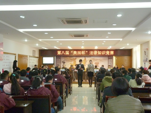 3月19日下午12级法学行政三班十余位班委冒雨走进弋江桥街道办事处与奥园社区携手举办了第八届“奥园杯”法律知识竞赛。下午三点本次法律知识竞赛在主持人于志立、蒋珊珊主持下顺利拉开帷幕。弋江区人民法院、检察院、弋江桥党工委、弋江派出所和二十五中学的部分领导出席了此次活动。