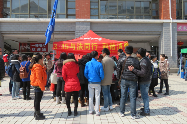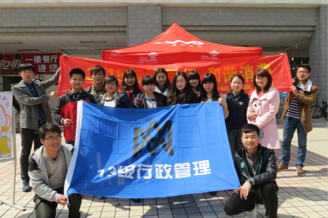 3月14日中午,13级行政管理班级在二食堂广场举行了“与法同行,和谐消费”主题活动,活动以有奖竞答的方式进行,在校园内充分宣传了新修订的《消费者权益保护法》。