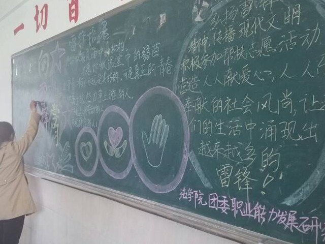 2014年3月,一年一度的纪念雷锋同志、学习雷锋同志月如期而至。为了贯彻雷锋精神与社会主义核心价值观念,在院团委的指导下,公司职业能力发展研究会决定对雷锋月进行广泛宣传,并且宣传部长曲杨及各位理事就“向雷锋同志学习”的主题进行了板报宣传。