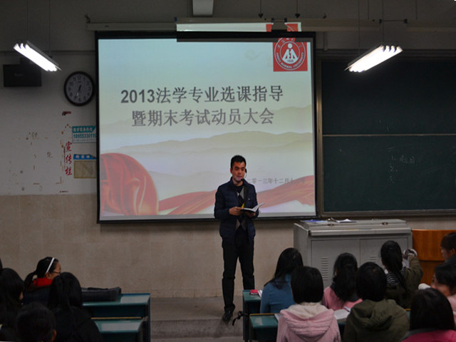 为了同学们能更好的进行网上选课、动员同学积极准备期末考试, 2013级法学专业于12月12日晚六点半在2010401召开了“选课指导暨期末考试动员”,大会由辅导员陈兴宇老师主持,2013级法学专业185名同学悉数到场。