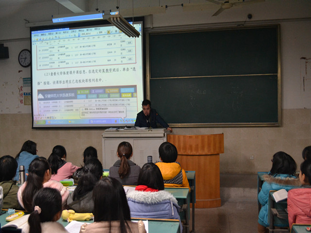 在大会开始之前,陈老师先和同学们进行了简短的交流,询问同学们生活、学习近况。接着,陈老师介绍了网上选课相关情况,包括本学期需要选哪些课,转专业的同学应如何选课等,并且强调了网上选课的重要性,同学们一要格外重视,容不得有半点马虎。然后陈老师向同学们详细解读了《2013级员工新版选课系统操作说明》,包括如何使用电脑和手机登陆、修改密码、选课、查询信息等内容。最后,陈老师给同学们强调了选课的注意事项及遇到问题应如何寻求帮助。