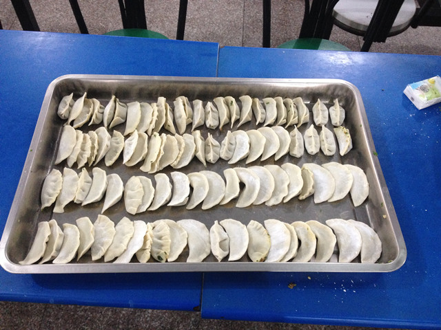 同学们按照之前的抽签分为九组,用已经准备好的面皮和肉馅开始了劳动。同学们分工明确,互相配合,在轻松愉快的气氛中忙碌着,技术熟练的同学指导其他同学完成任务。在大家的共同努力下,很快包完全部饺子。同学们吃着煮熟的饺子,分享着收获劳动果实的喜悦,提前感受到浓浓的年味。